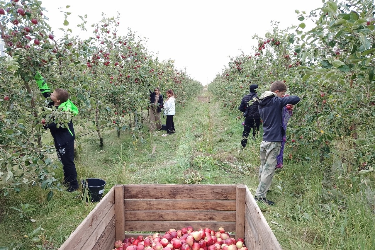 За те дни, когда школьники выходили в сад, они собрали 16 контейнеров яблок, это около 5 тонн.