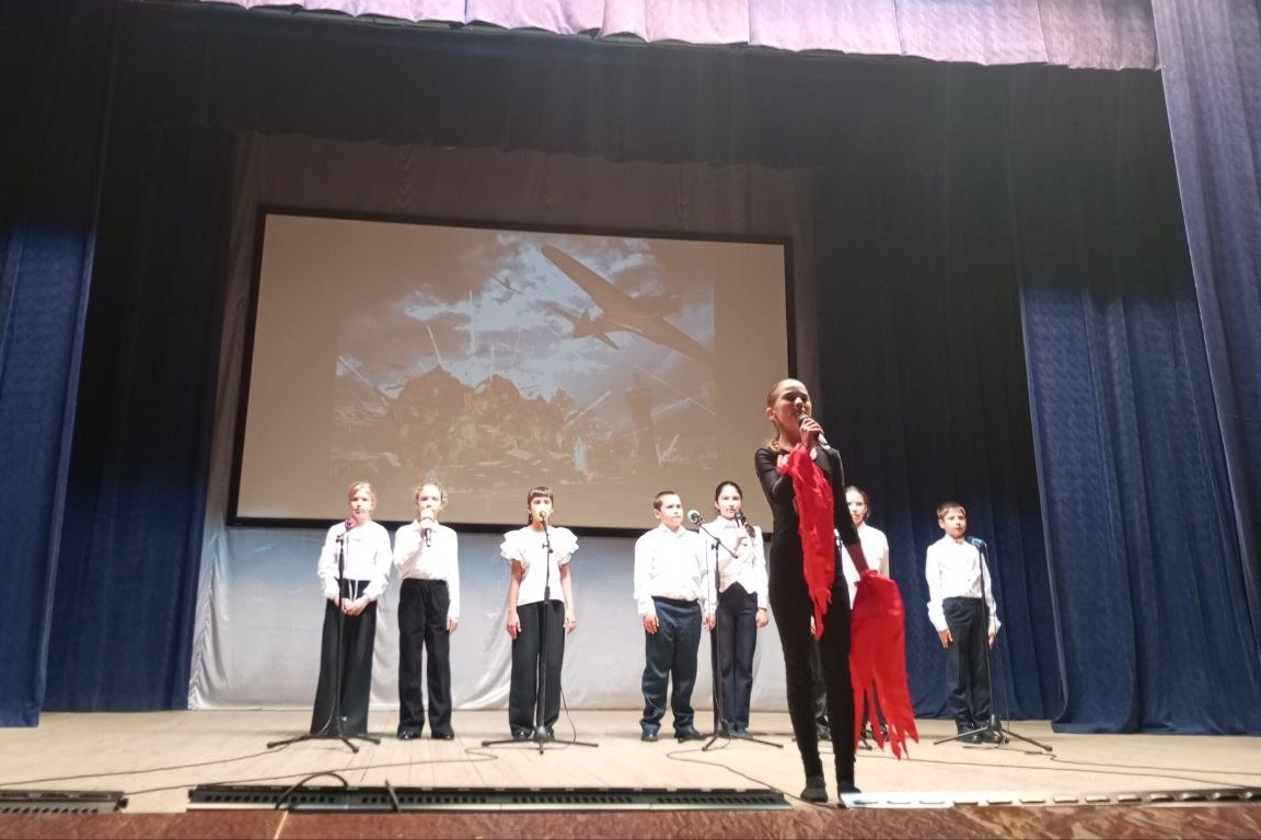В год 80-летия Великой Победы пронзительно звучали произведения Роберта Рождественского. Дарья Межонова прочитала «Балладу о зенитчицах», а школьники из детской театральной студии «Спутник» инсценировали главу из поэмы «210 шагов».