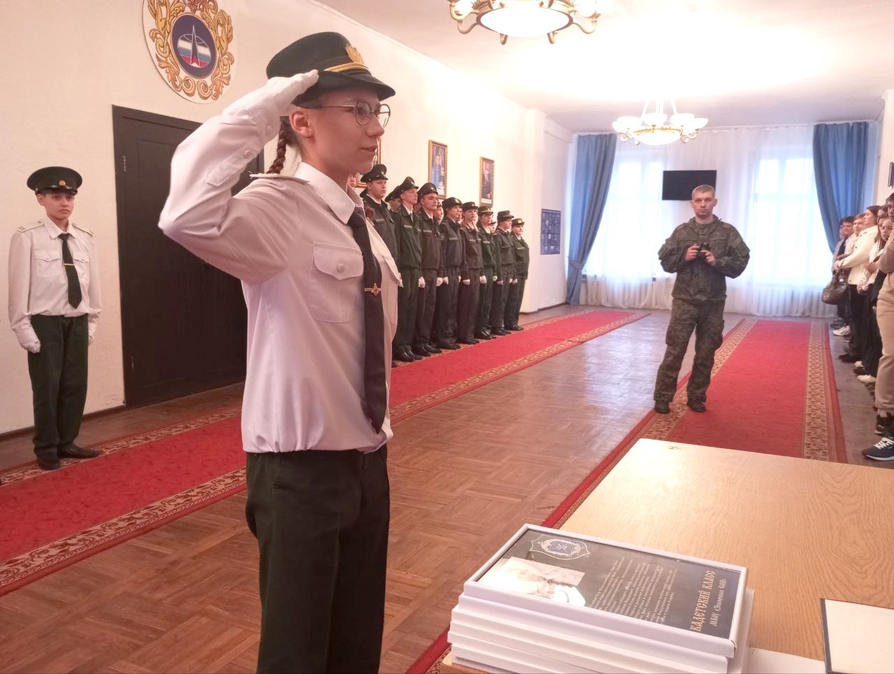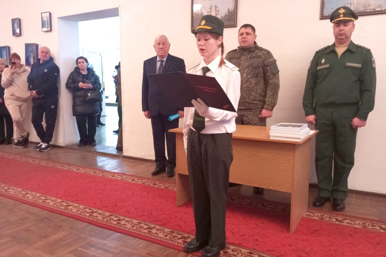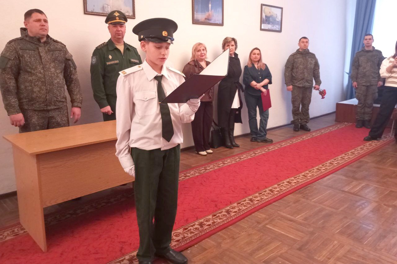 В зале воинской славы гарнизонного офицерского клуба войсковой части «Арсенал» прошло торжественное посвящение в кадеты восьмиклассников Первомайского филиала Знаменской средней школы.