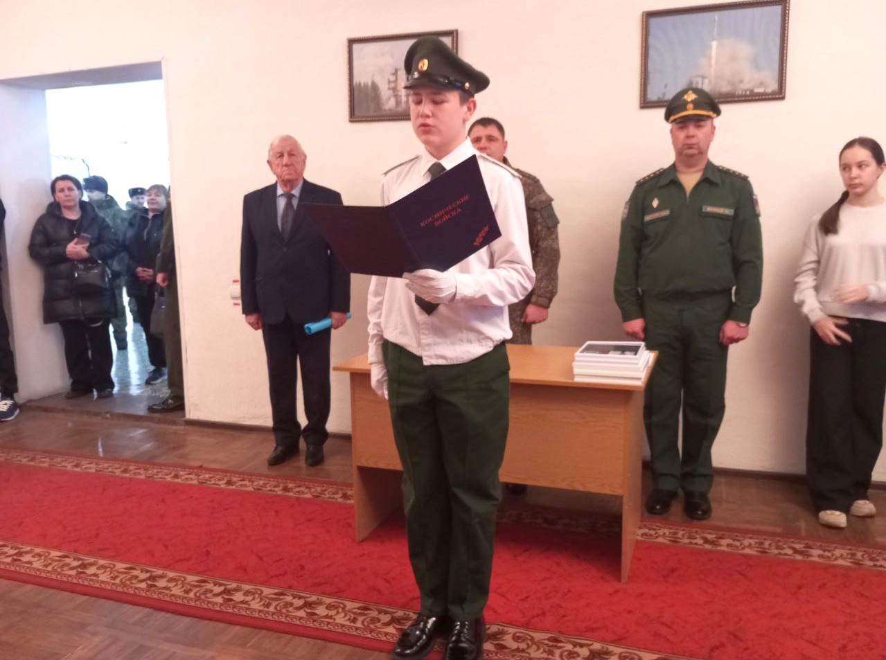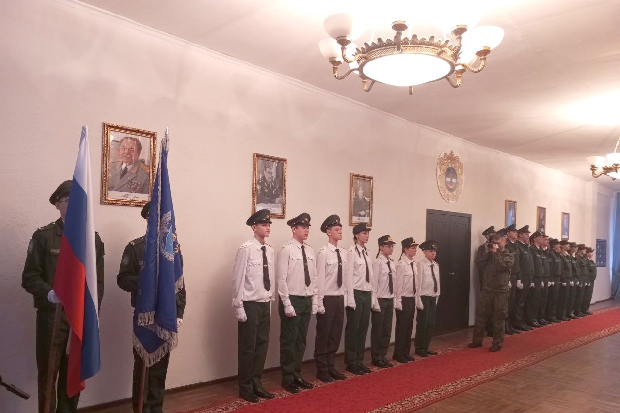 Знамённая группа внесла Государственный флаг России и знамя войсковой части. Перед парадным строем каждый из семи посвящаемых в кадеты зачитал клятвенное обязательство.