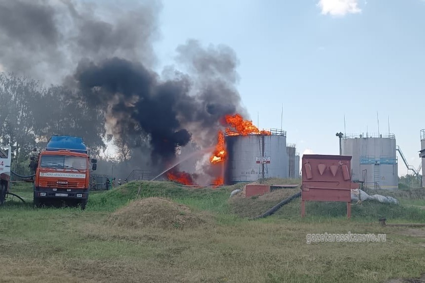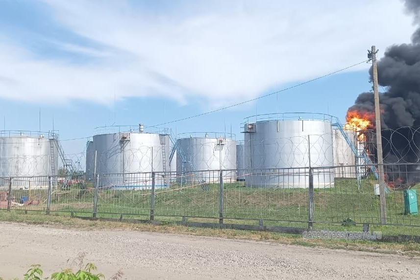 Продолжается ликвидация возгорания на нефтебазе в селе Платоновка Рассказовского округа, случившегося из-за падения БПЛА рано утром. Как сообщает сайт газеты «Трудовая Новь», очевидцы событий говорят о том, что пламя и клубы чёрного дыма были видны издалека.