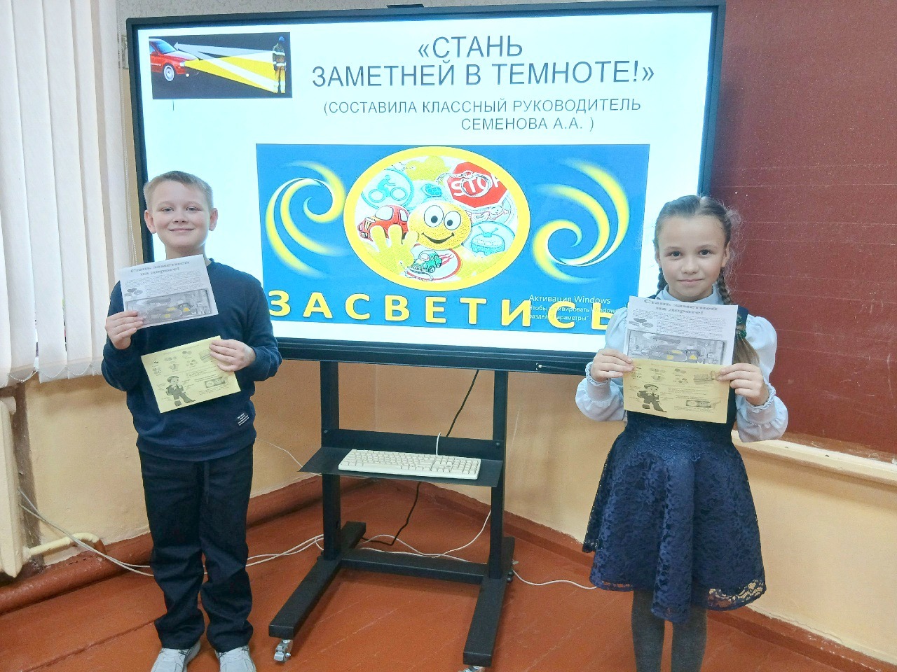 Во время бесед и классных часов школьникам раздали памятки. Ребята продемонстрировали свои фликеры и другие световозвращатели, которые у них имеются на рюкзаках и верхней одежде. Это значит, что знаменские дети будут всегда заметны на дорогах!