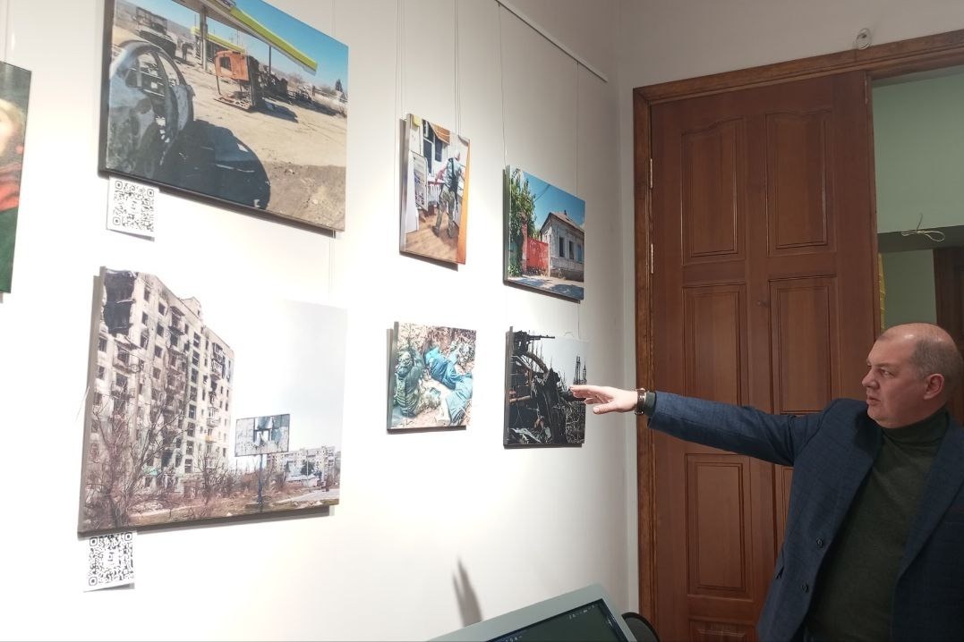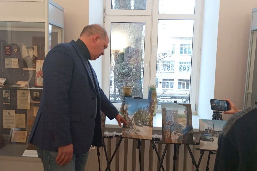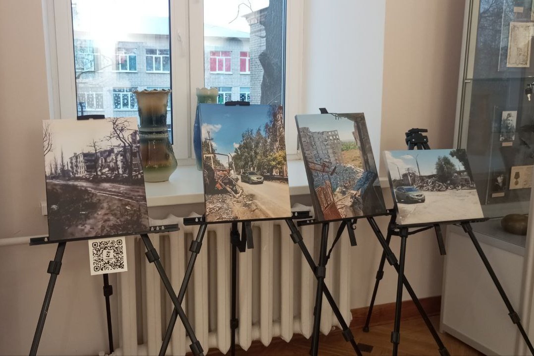 На экспозиции можно увидеть фотографии, сделанные Сергеем Кокоревым в разные периоды и на разных участках СВО. Бойцы в окопе, разбитые мосты и руины мирных некогда посёлков и городов… Мариуполь, Северодонецк, изрытая снарядами дорога между Горловкой и Донецком, Еленовка, Артёмовск, Суджа… Много раз слышанные названия предстают в реальности, тяжёлой и страшной. Но эту правду надо знать!