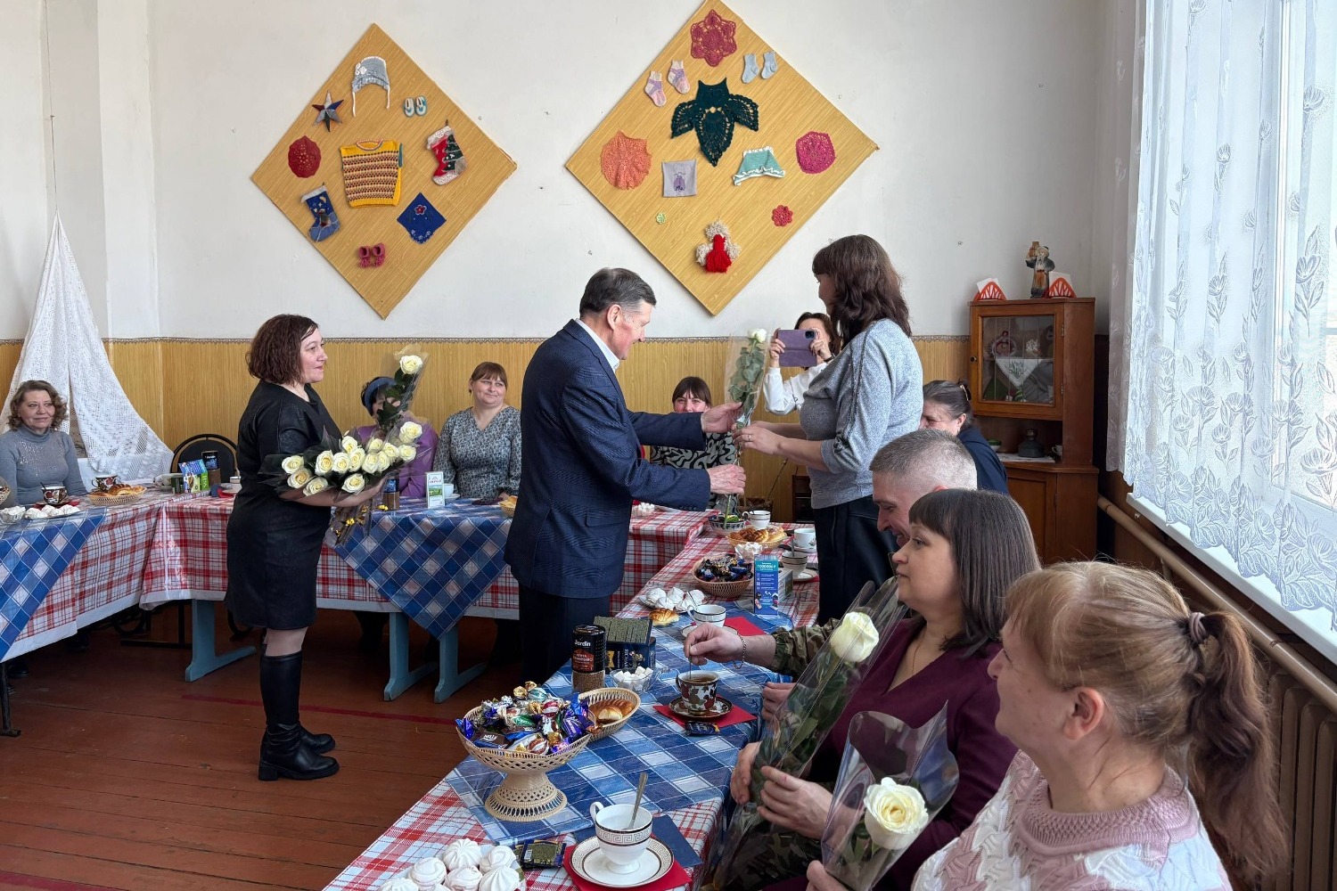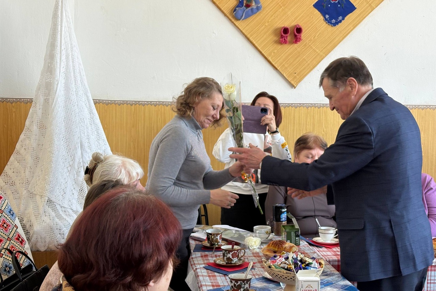 Песни в исполнении Ольги Евдокимовой и Надежды Дворецкой украсили праздничную встречу. Белые розы из рук главы Знаменского округа Владимира Елисеева тронули всех женщин.
