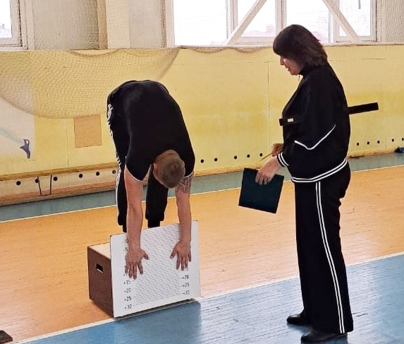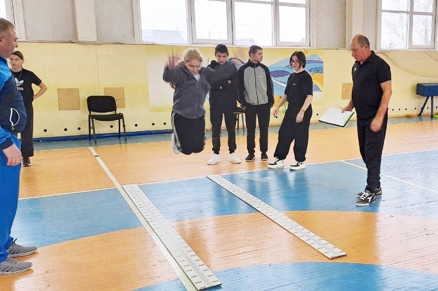 Школьники подтягивались, отжимались, соревновались в челночном беге, качали пресс, выполняли наклоны на гимнастической скамье и прыгали в длину.